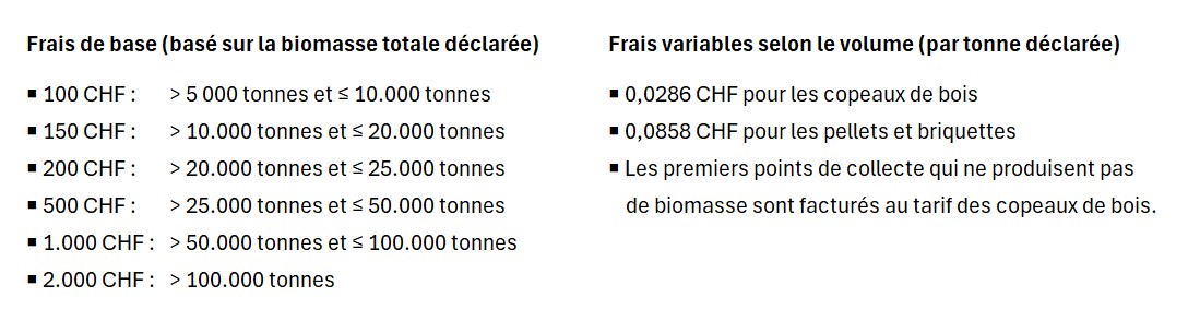 Si aucune biomasse n’est déclarée lors du premier audit : frais forfaitaires de 238 CHF.